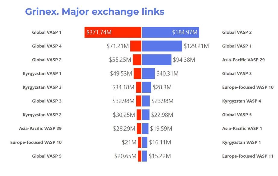 Grinex’s scale of operations has rapidly escalated. By early May, Global Ledger estimated that around $1 billion had already moved through various cryptocurrency exchanges. By the end of the month, this number surged to $1.66 billion involving 180 exchanges, referred to as virtual asset service providers (VASPs). The figure includes both incoming and outgoing transactions.